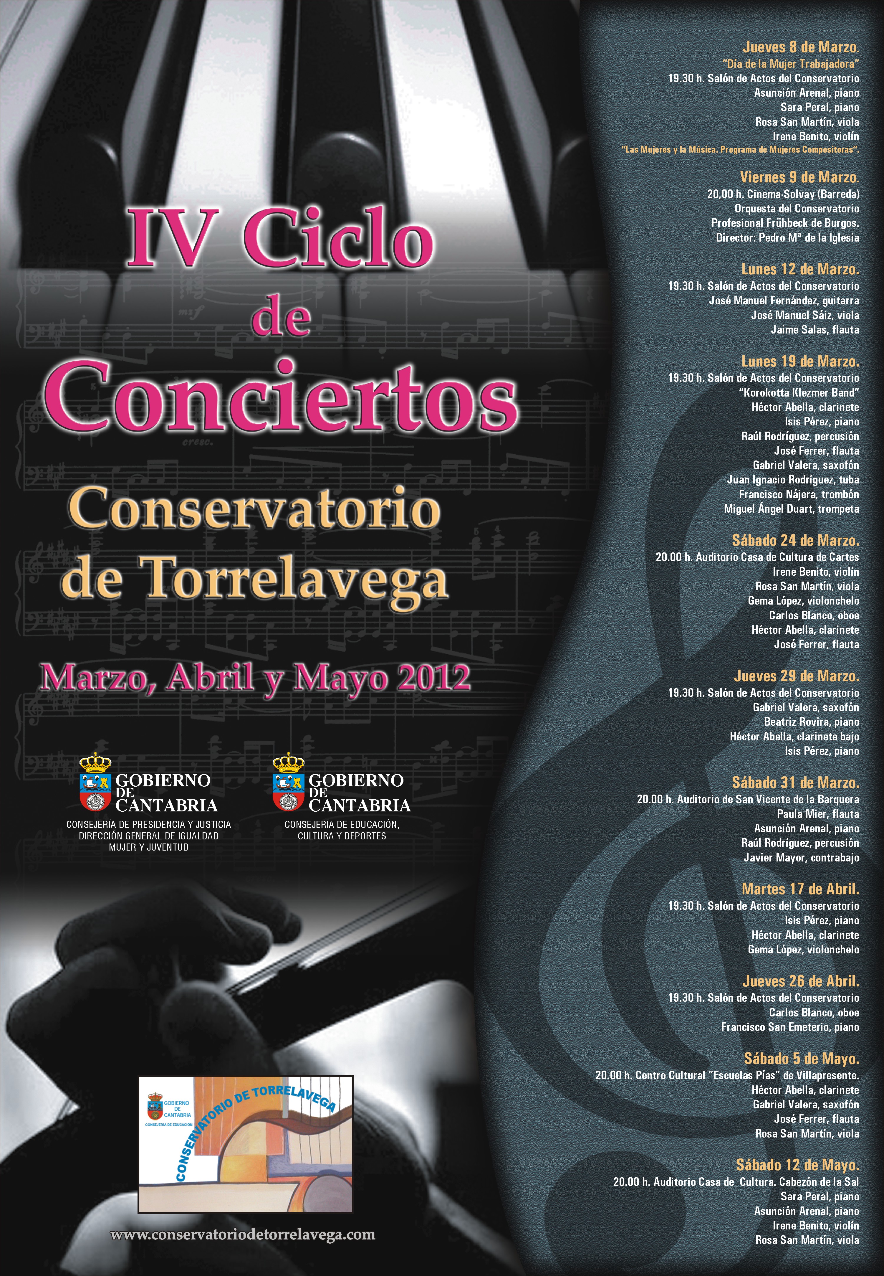 Aquí está el cartel del ciclo de conciertos del Conservatorio de Torrelavega, que celebra este año su cuarta edición saliendo del centro y expandiéndose a las salas de conciertos de Cantabria.